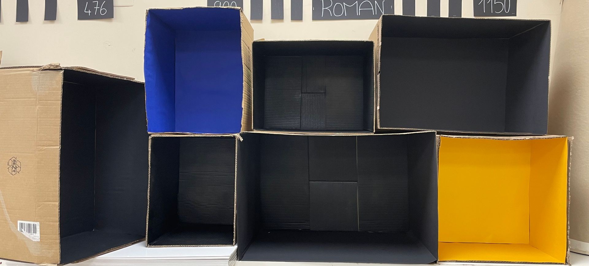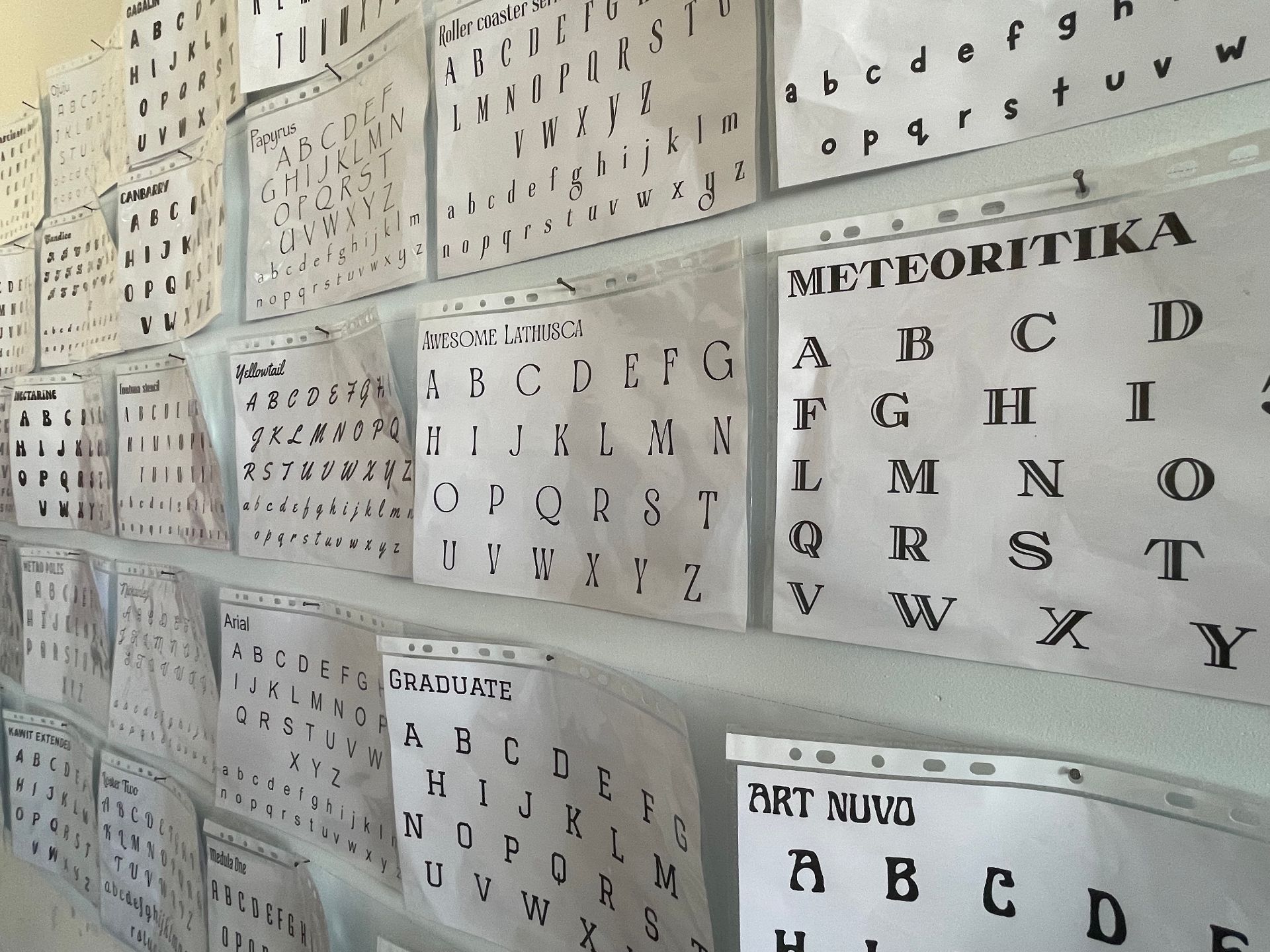 ⇒ Dans le cadre de certaines séquences, des ressources ou du matériel doivent être conçus pour accompagner au mieux la réussite des élèves dans leur production plastique. Par exemple : les 4ᵉ ont pu s'appuyer sur le mur de police afin de dépasser leur écriture manuscrite et de s'essayer à de nouveaux gestes et formes d'écriture. Pour une autre séquence, des mini-studios photographiques viennent d'être construits et vont permettre de réaliser des captations photographiques de meilleure qualité.